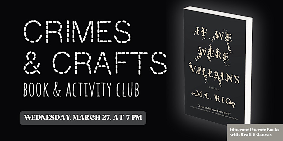 I’ll also be making an appearance this Wednesday at the Charleston Craft & Canvas book club. If you can’t get enough of the Villains, this is a great opportunity to discuss the book with other fans of crime and mystery, and to do some collective crafting inspired by the story. Just to sweeten the deal, the organizer also happens to be the person who directed me in my first Shakespeare play when I was fourteen. It promises to be a great hang, so if you’re in or around Charleston, SC, I hope you’ll sign up. You can do that–and find more info–here.