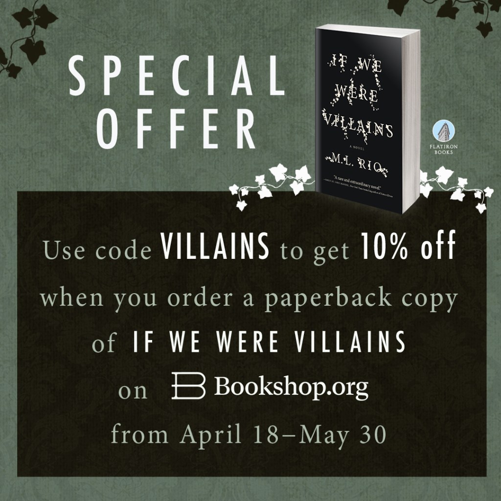 Good news for anybody loading up their ereader for summer travel: If We Were Villains is on sale for $2.99 across platforms today through July 3. Grab it from your favorite digital retailer!